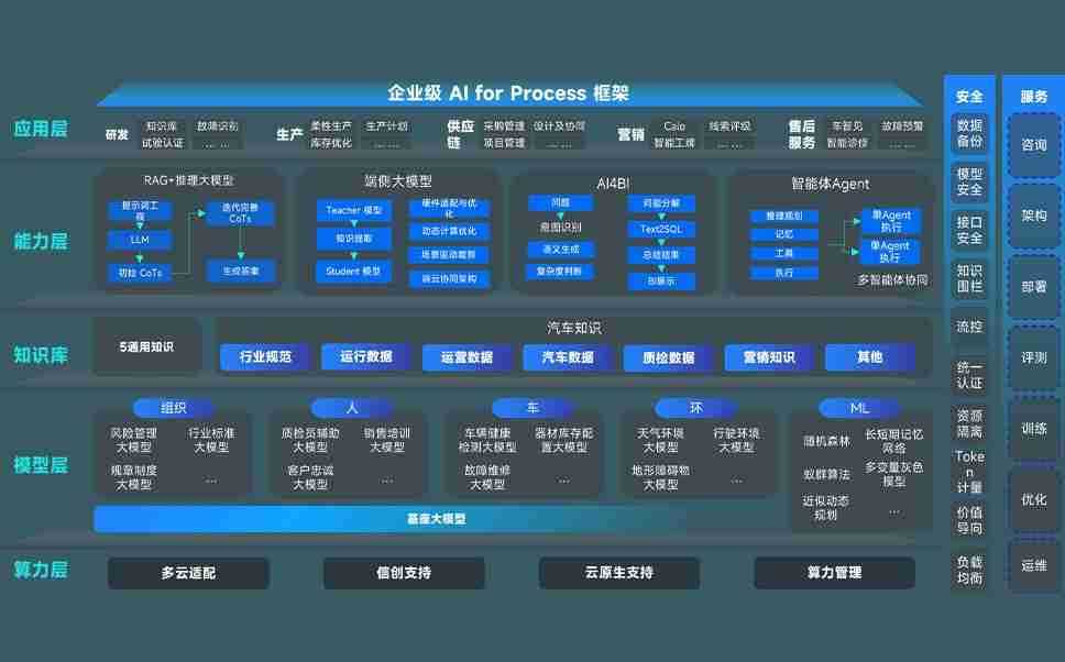 尊龙时凯问学智车解决方案是一套基于AI技术的汽车行业智能化系统,,,覆盖从底层算力到顶层AI应用的全栈方案。。方案由算力层、、模型层和应用层组成:算力层,,,,方案支持多种一体机配置,,,具备云端灵活部署、、、多云适配以及动态优化计算资源的能力;模型层,,,尊龙时凯问学平台版提供了企业级AI应用一站式构建与管理平台,,,支持基于后训练强化技术的汽车企业专属模型的训练、、、评测和运营;应用层,,尊龙时凯问学DeepSeek版提供包括超级员工、、、智能招采、、、、智能营销、、智能客服、、、、AI for BI等一系列解决方案,,,可助力汽车行业实现数字化转型,,,,让管理更智能、、响应更敏捷。。。。